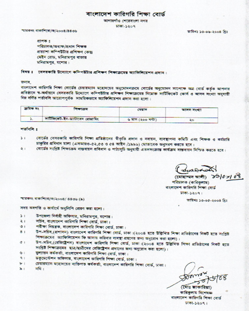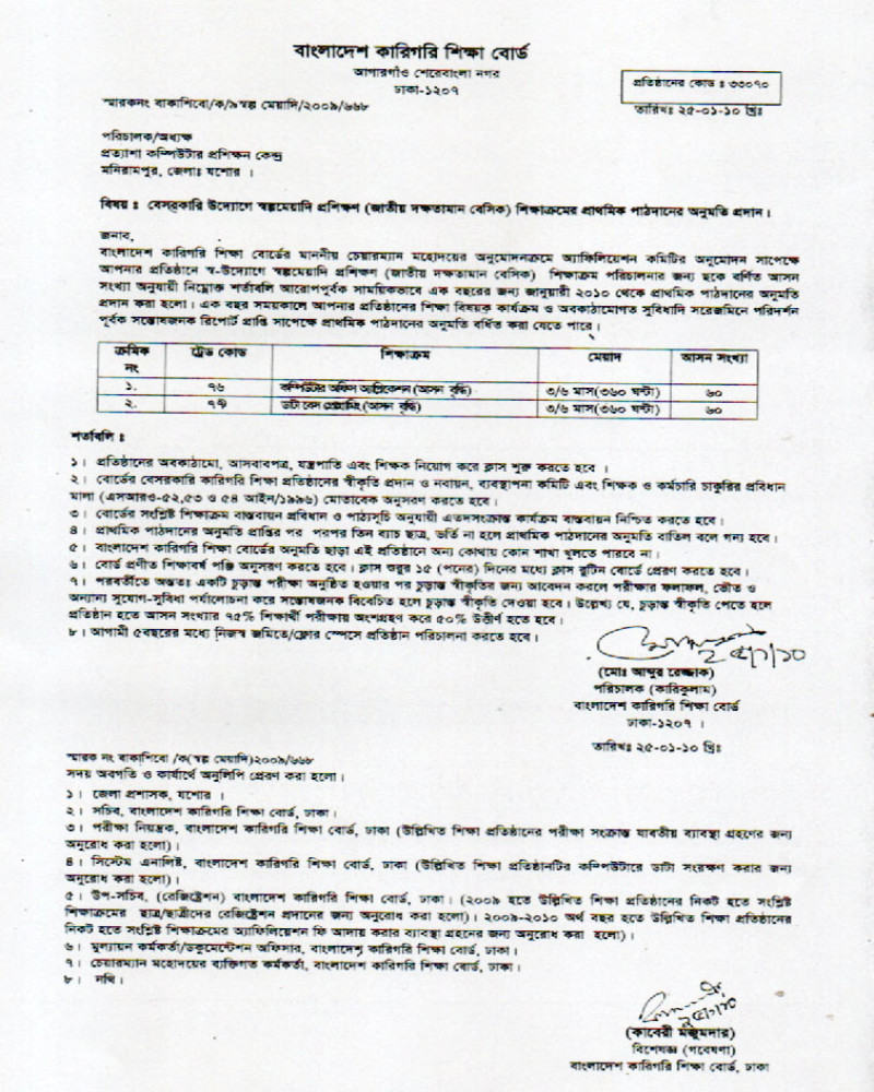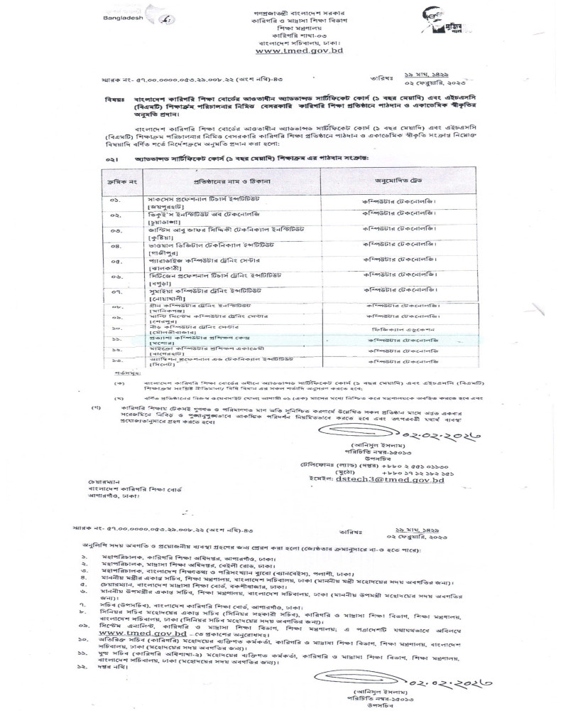 কারিগরি ও মাদ্রাসা শিক্ষা বিভাগ, শিক্ষা মন্ত্রনালয় থেকে প্রাপ্ত অনুমোদন